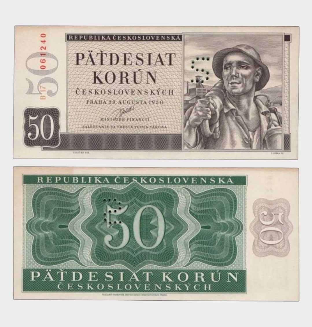 Czechoslovakia – 1950 – 50 Korun – Perforation : S